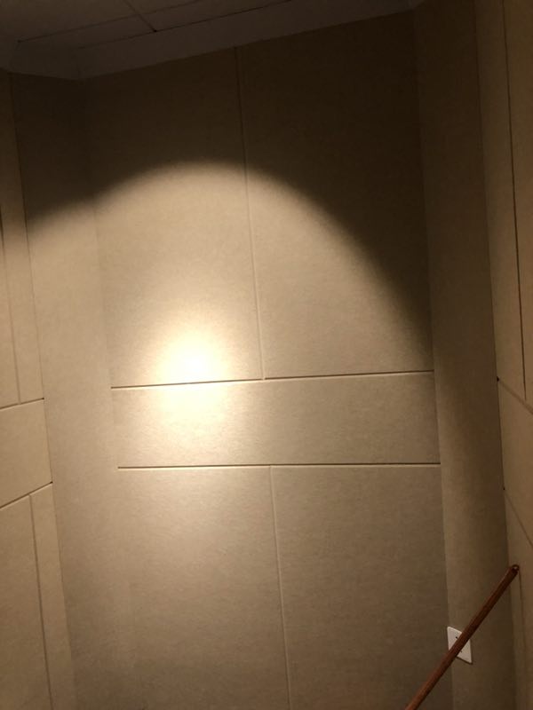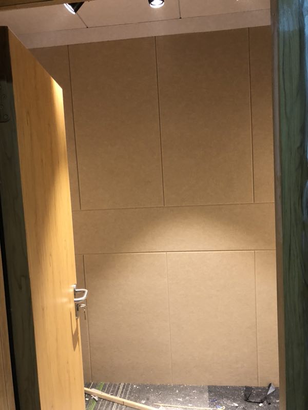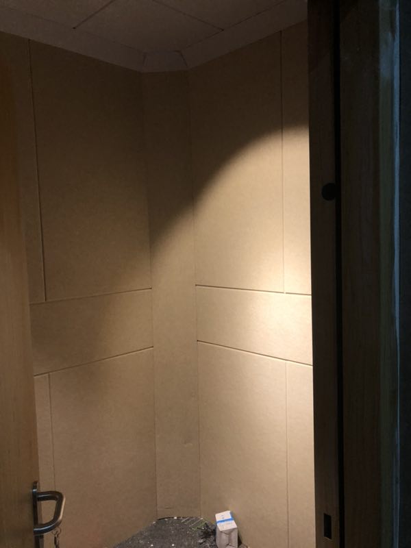 完工測(cè)試,環(huán)境噪音在65DB,關(guān)上門(mén)測(cè)試 內(nèi)部環(huán)境噪音36DB. 此房間,只有一面墻為實(shí)體墻面,一面為玻璃,另外兩面為新建墻體。